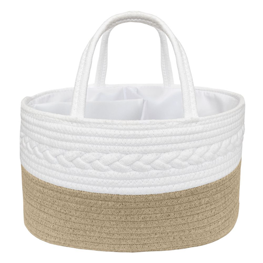 Cotton Rope Nappy Caddy With Divider - Natural/White