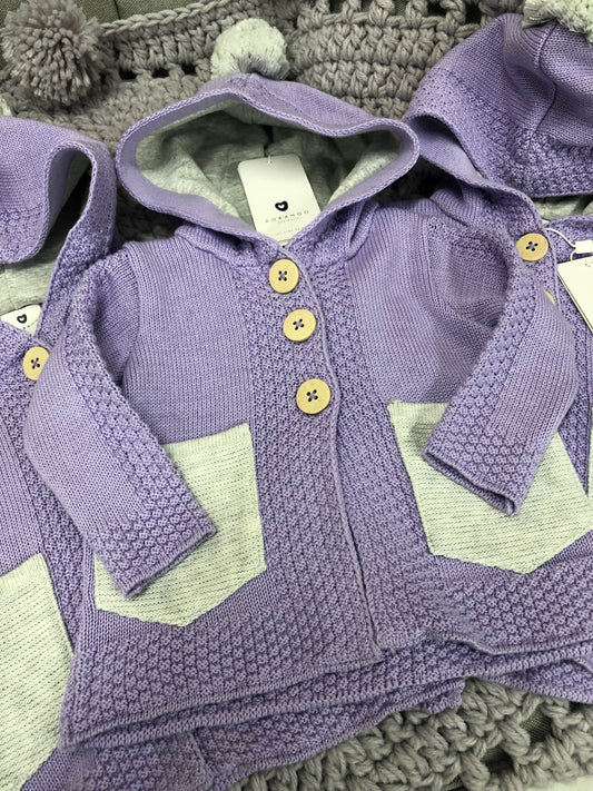 Korango Lavender Knit Jacket with Contrast Pockets and Pom Pom