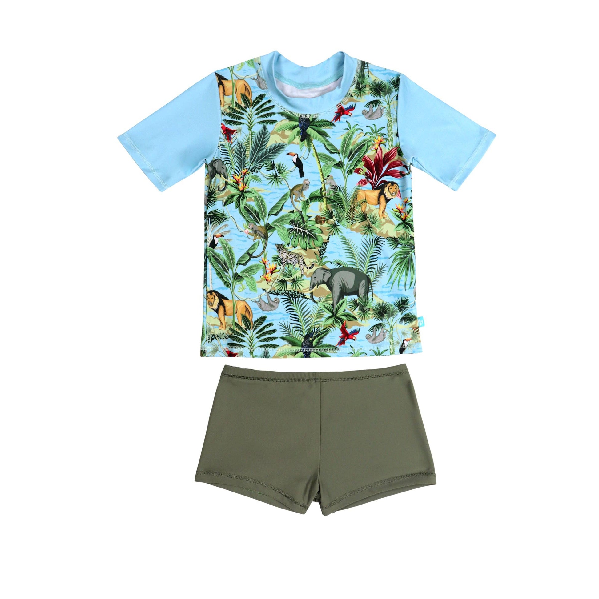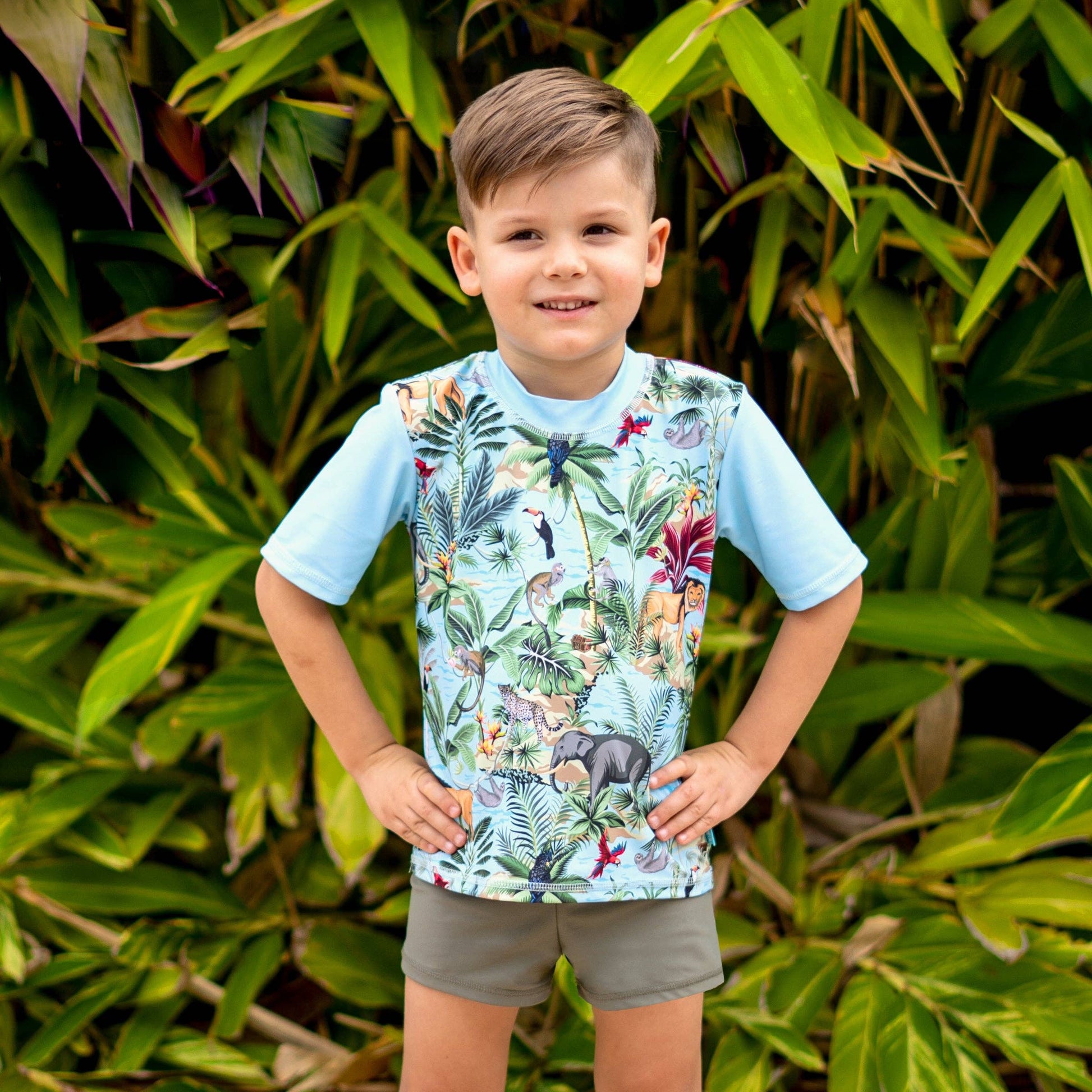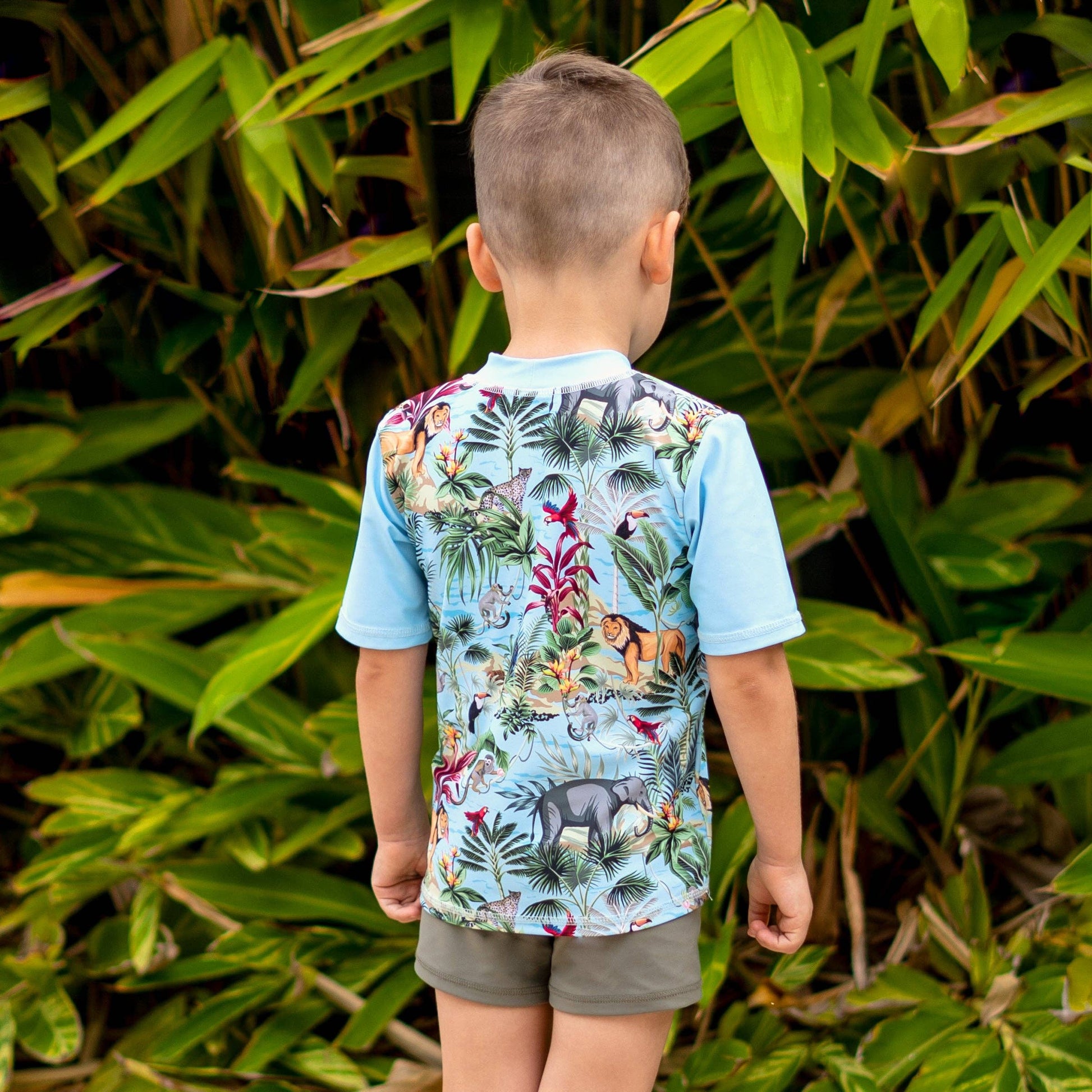 UPF 50+ Fabric Digitally printed Treasure Island fabric and plain matt fabrication