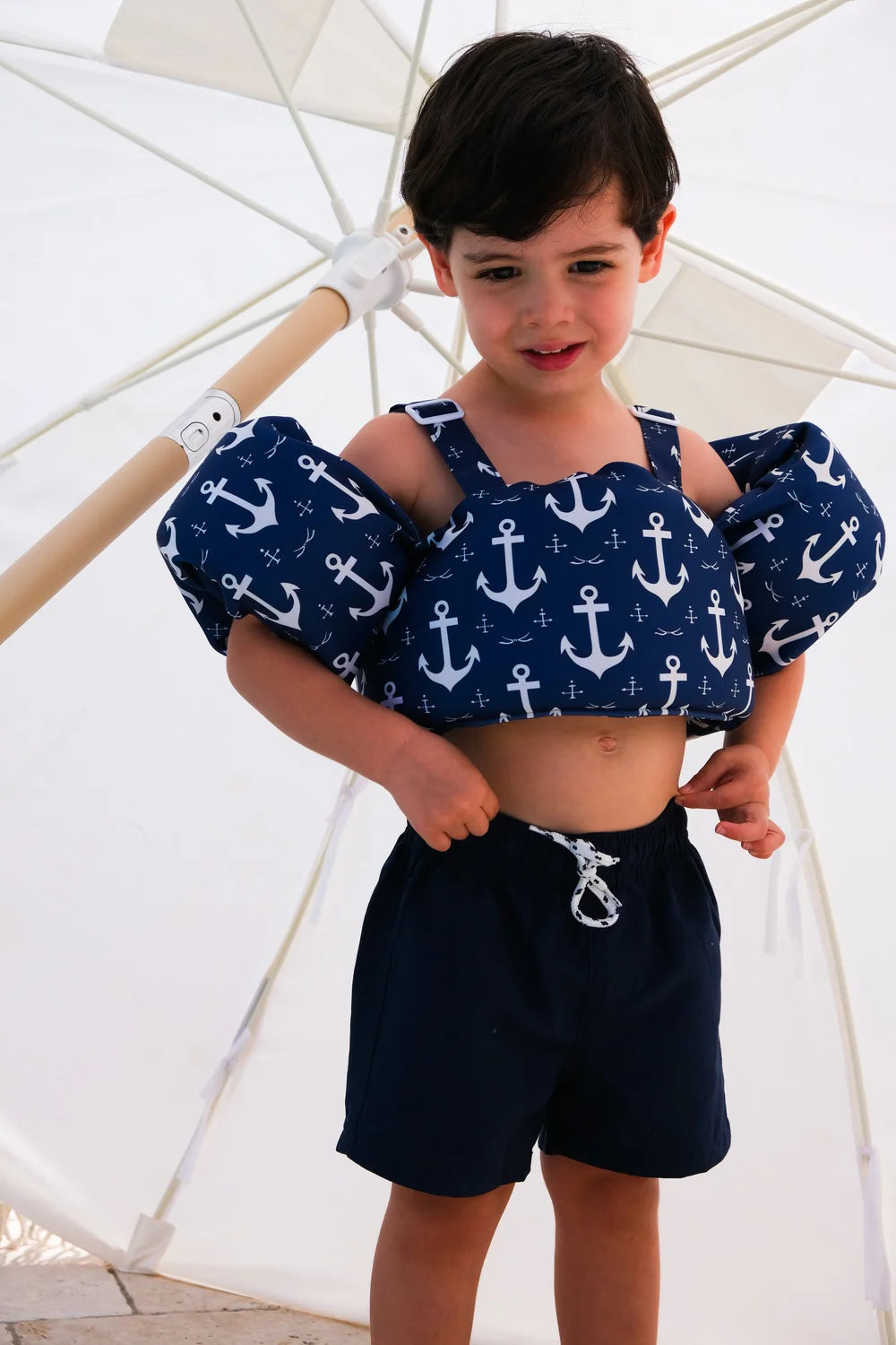 Set sail for style and sophistication with the Ancora Blu swim float. Inspired by the deep blues of the Mediterranean Sea and the timeless strength of nautical anchors, this design brings a bold yet classic touch to any summer escape. Perfect for little explorers with a love for the sea, Ancora Blu captures the spirit of adventure, resilience, and endless coastal charm.