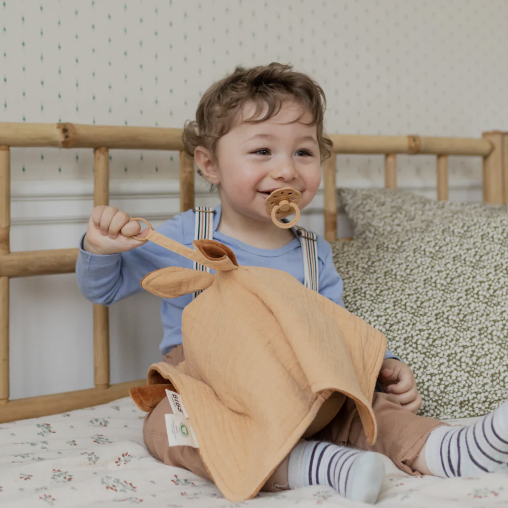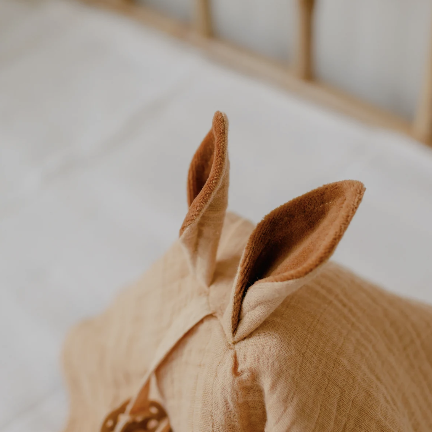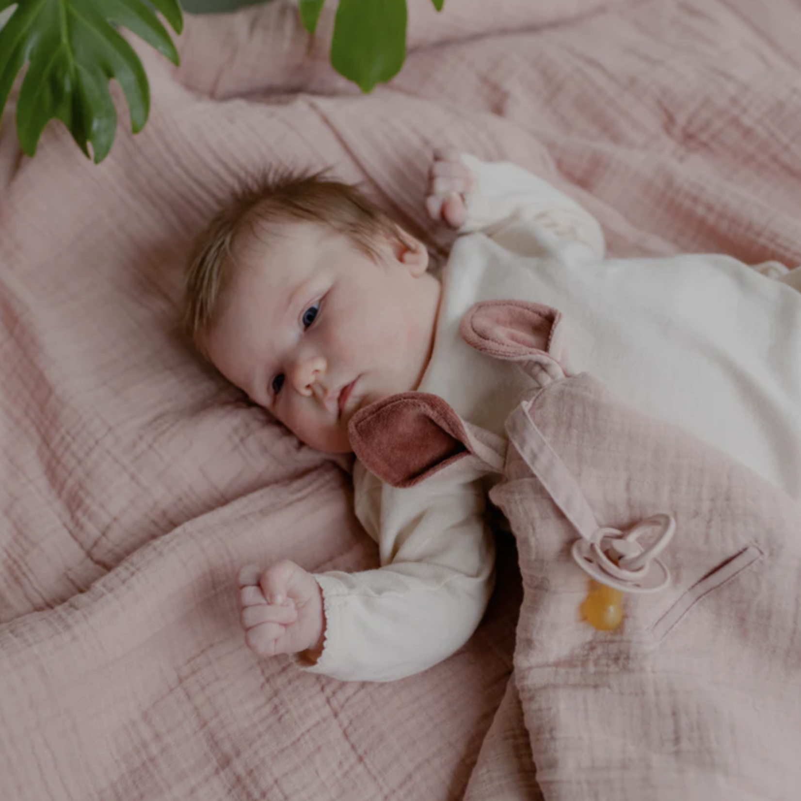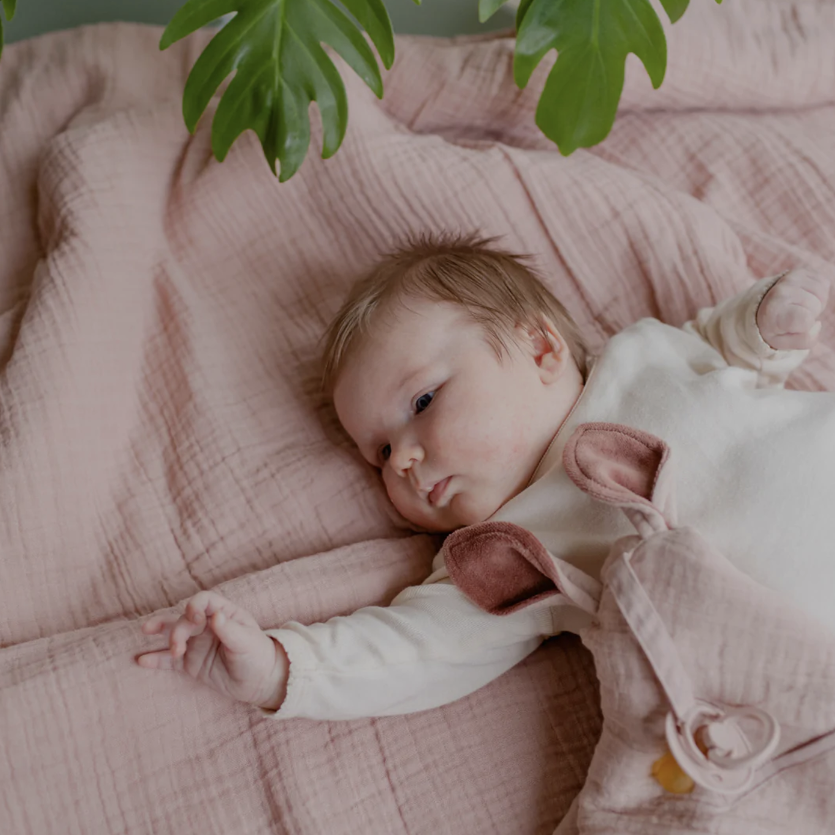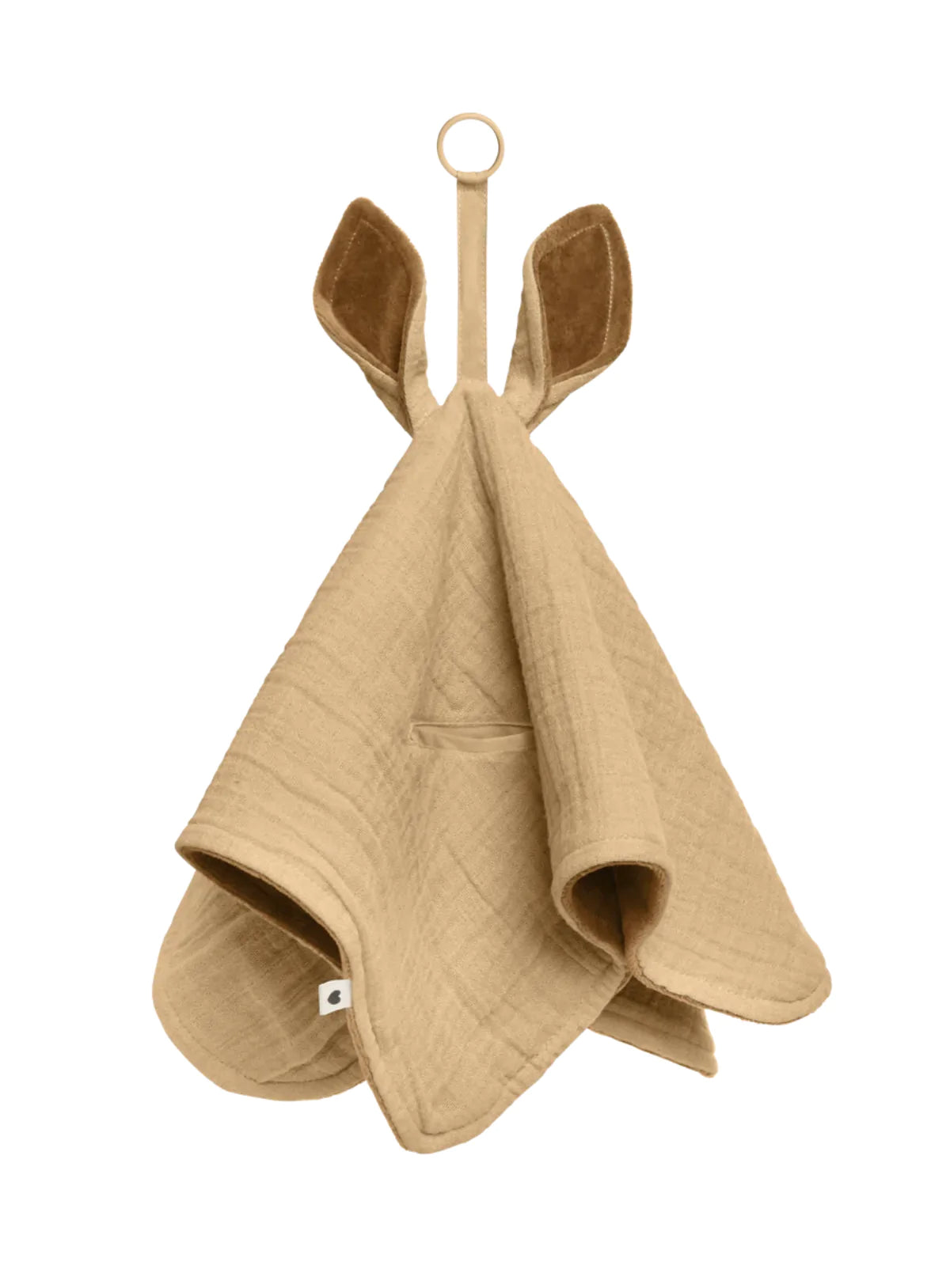 Your baby will love to cuddle with our soft and snuggly cuddle cloth. It is an indispensable essential for babies to provide soothing security and comfort. Our cuddle cloth is made of ultra-soft organic cotton. The cuddle cloth has sweet kangaroo ears and a ring to which your baby’s pacifier can be fastened. It fits all pacifiers, so your baby always has its favorite pacifier close.
