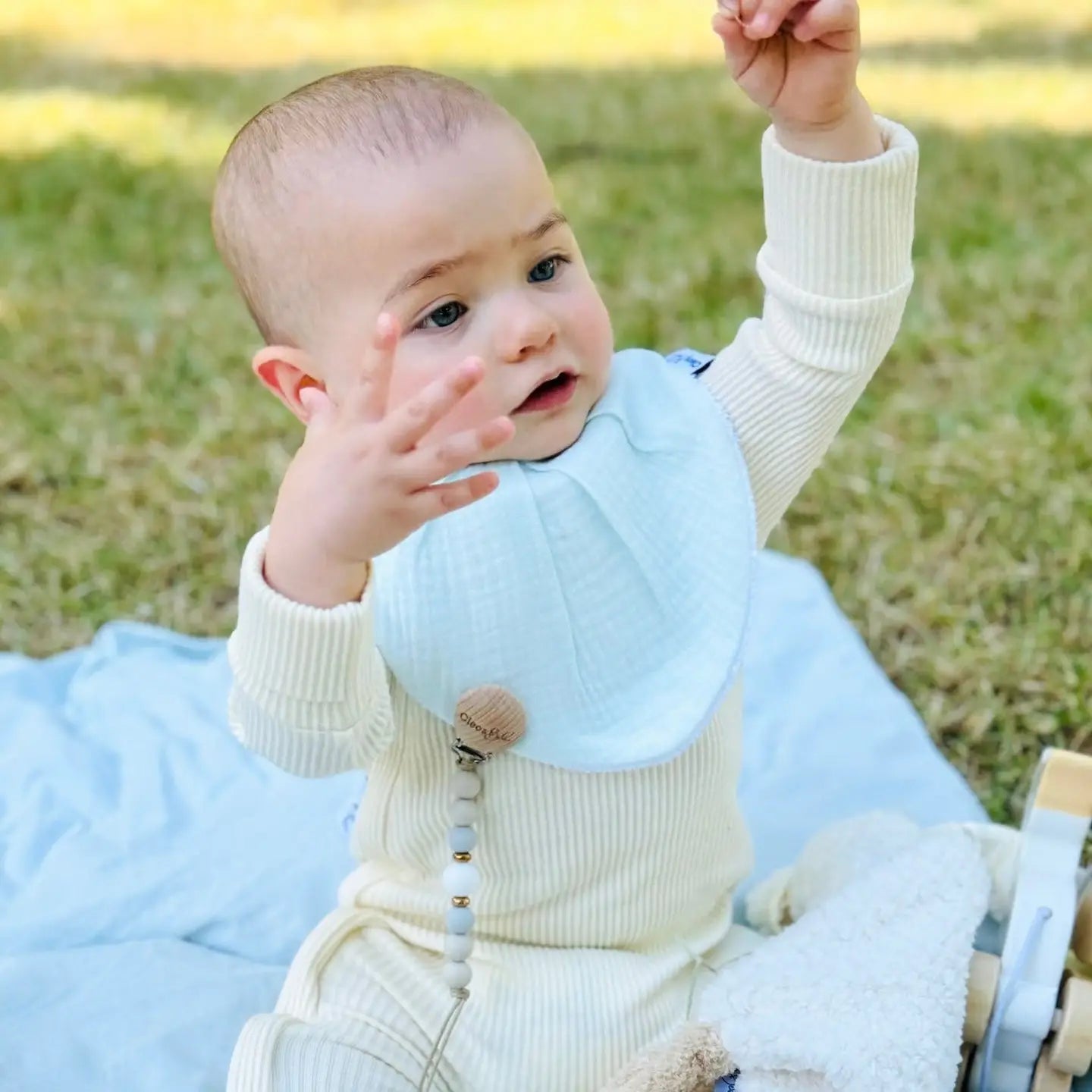 Our Bandana Bibs are the perfect combination of style and practicality for your little one. Made from absorbent 100% muslin cotton front, this bib is gentle on your baby's delicate skin.