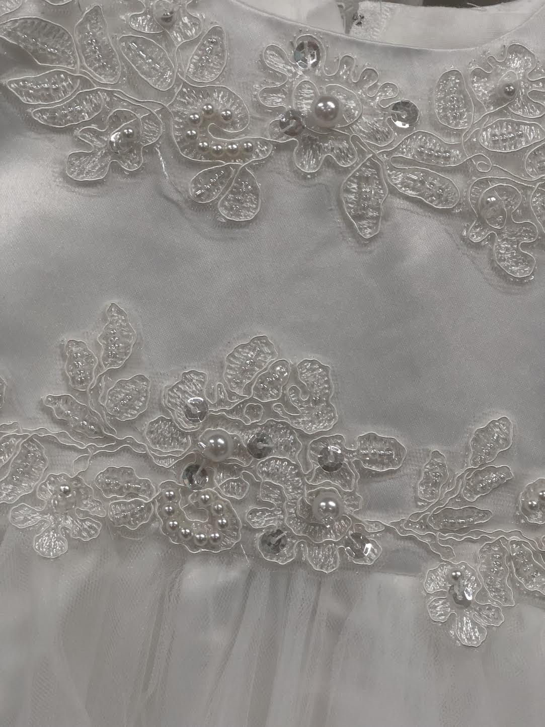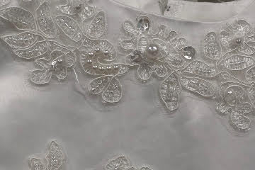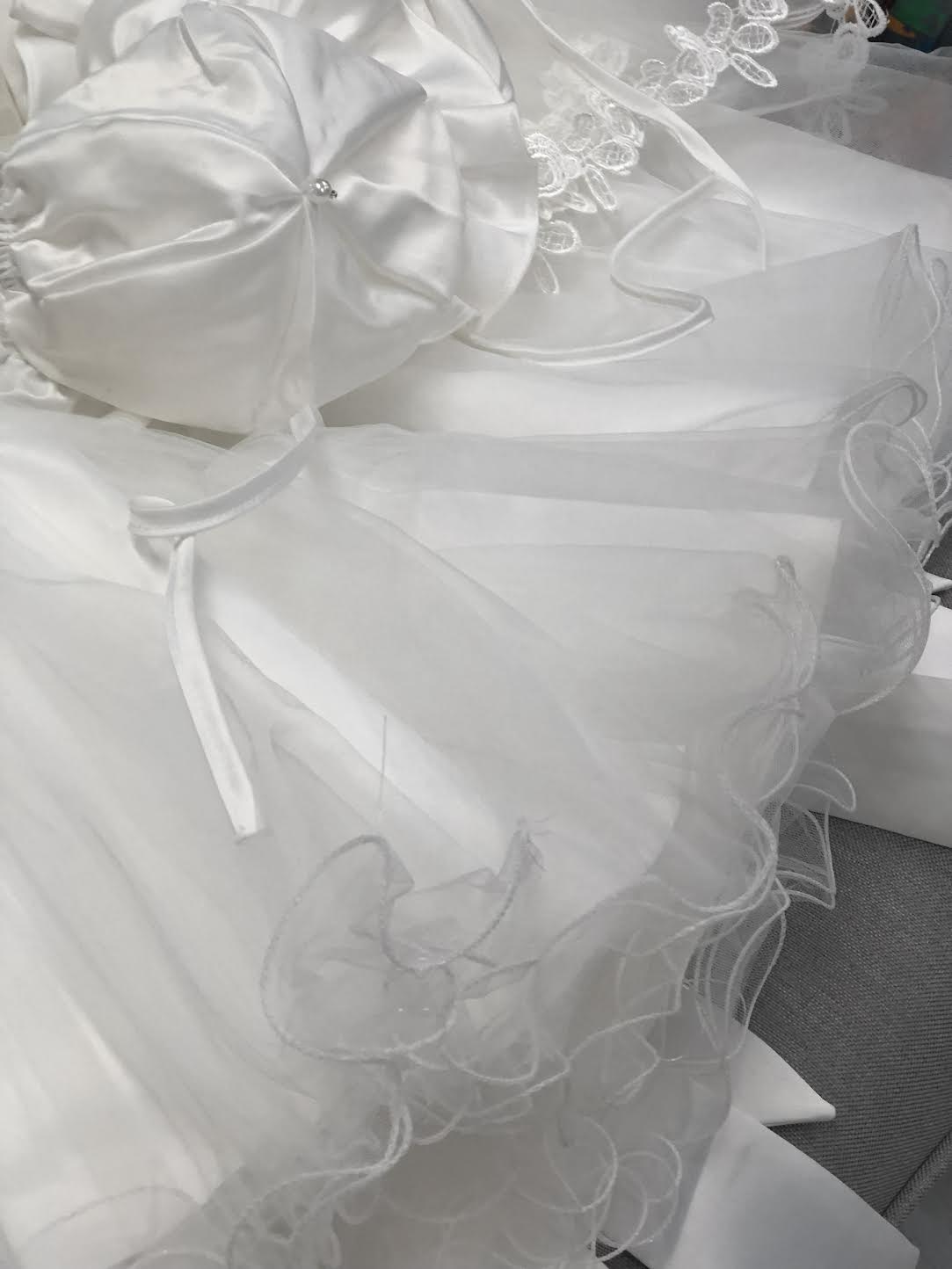 The bonnet is satin with pearl detail, fully cotton lined for breathability. The dress has delicate appliqué on the bodice, with back zip opening and sash, dress is fully cotton lined for comfort.