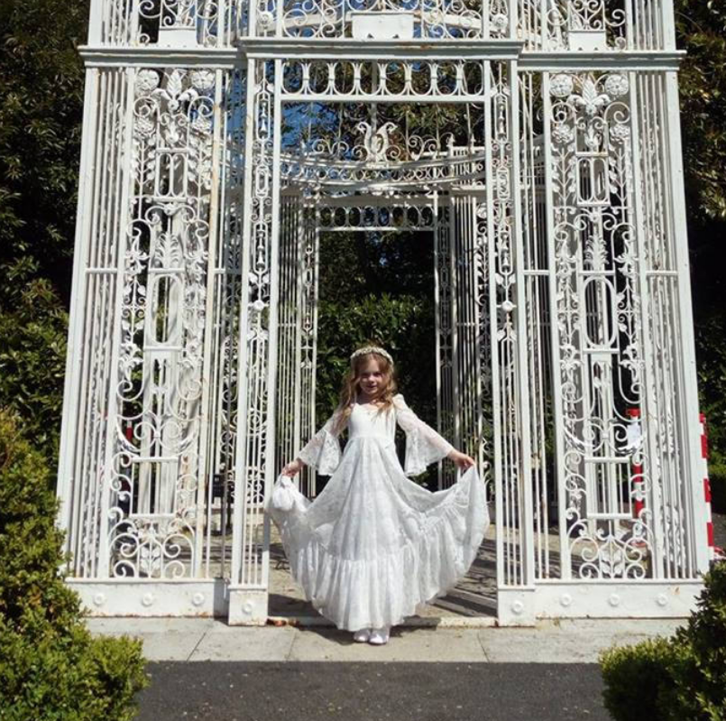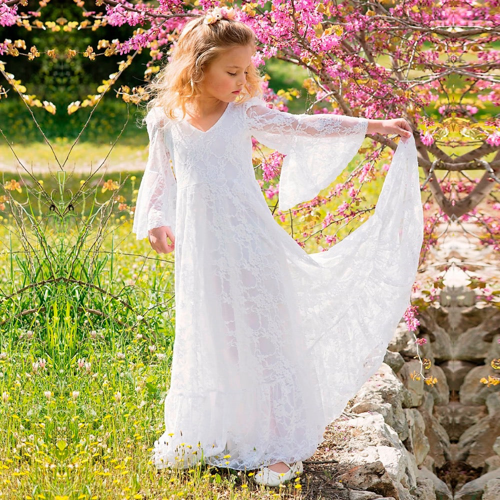 Soft lace dress, with v neck and 3/4 sleeve, floaty and feminine.